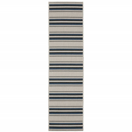2' X 8' Blue and Gray Stain Resistant Indoor Outdoor Area Rug