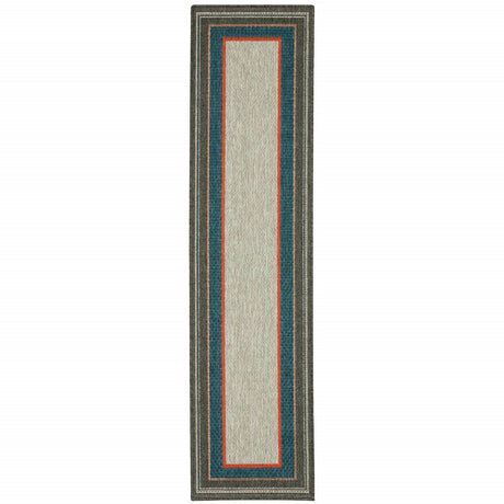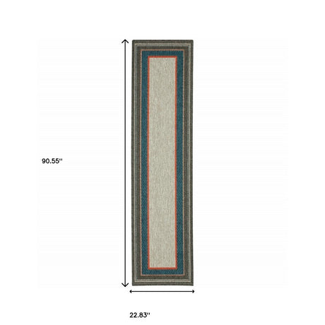 2' X 7' Gray and Ivory Stain Resistant Indoor Outdoor Area Rug
