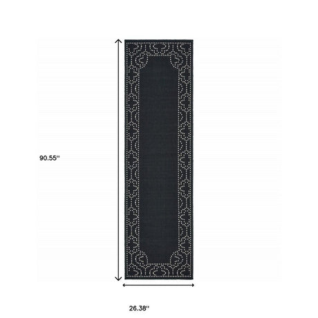 2' X 8' Black and Ivory Stain Resistant Indoor Outdoor Area Rug