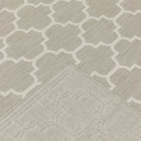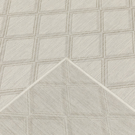 2' X 7' Beige Geometric Stain Resistant Indoor Outdoor Area Rug