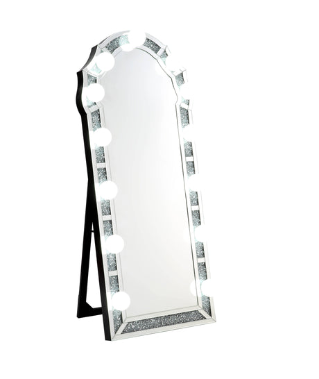 Noralie - Mirrored Faux Diamonds Floor Mirror - Silver by Couch.com