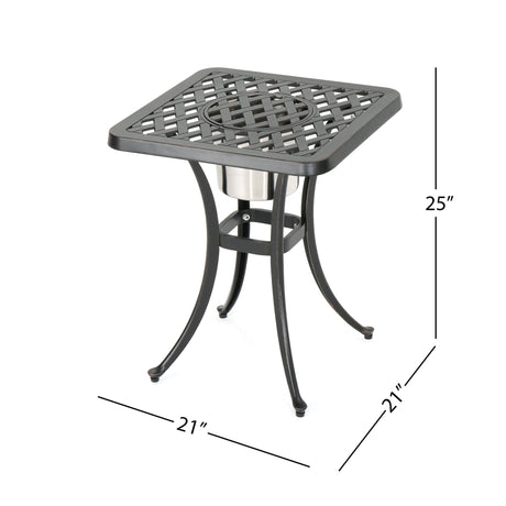 Outdoor Cast Aluminum Bistro Table With Ice Bucket - Black Copper by Couch.com
