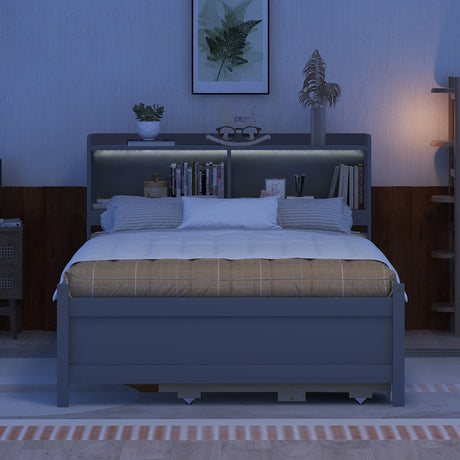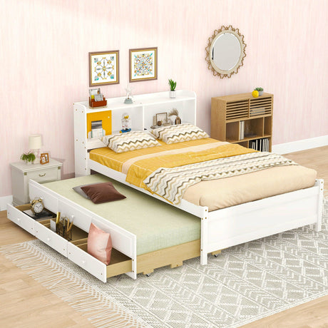 Bed With All In One Cabinet, Shelf And Sockets, Twin Long Trundle by Couch.com