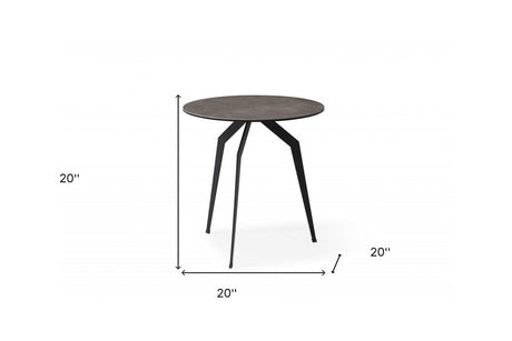 20" Black and Gold Faux Marble And Metal Round Coffee Table