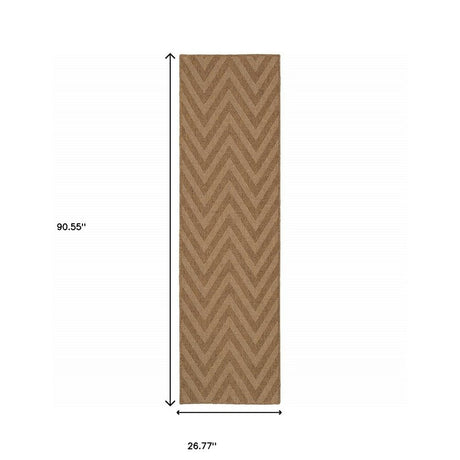 2' X 8' Tan Geometric Stain Resistant Indoor Outdoor Area Rug