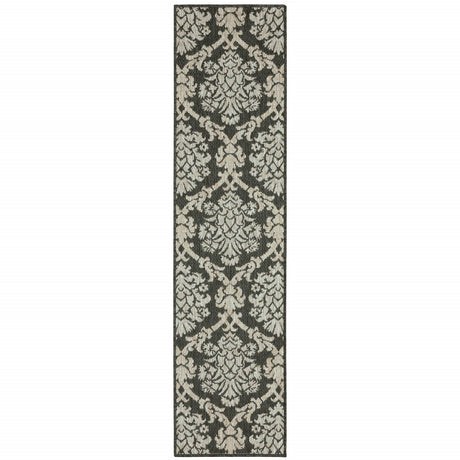 2' X 8' Gray Floral Stain Resistant Indoor Outdoor Area Rug