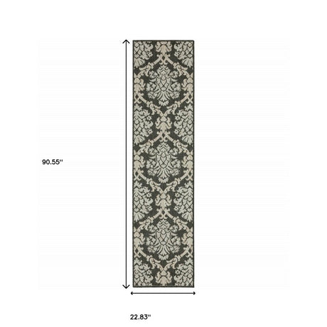 2' X 8' Gray Oriental Stain Resistant Indoor Outdoor Area Rug