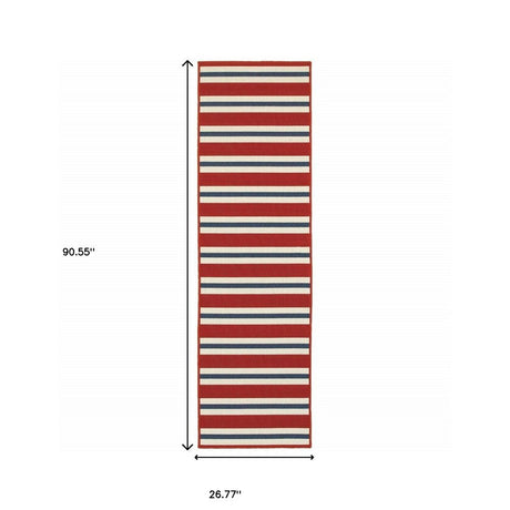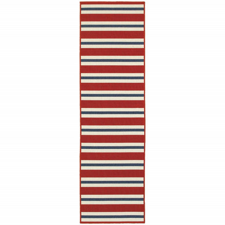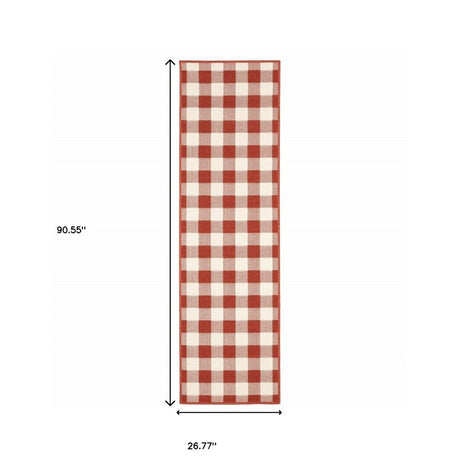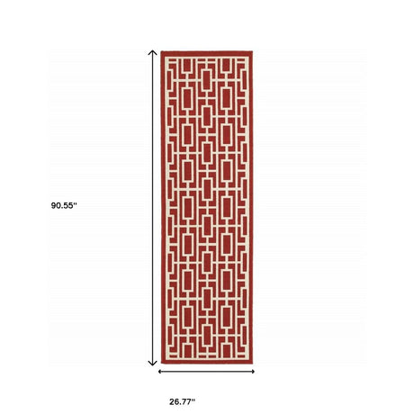 2' X 8' Red and Ivory Geometric Stain Resistant Indoor Outdoor Area Rug