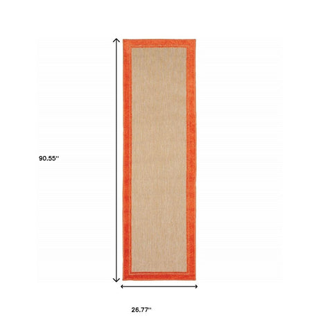 2' X 8' Orange Stain Resistant Indoor Outdoor Area Rug