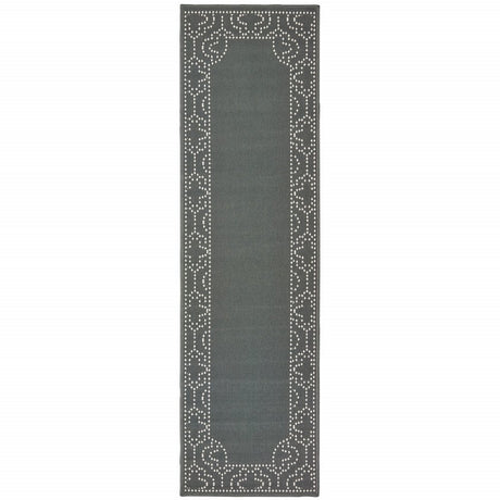 2' X 8' Gray and Ivory Stain Resistant Indoor Outdoor Area Rug