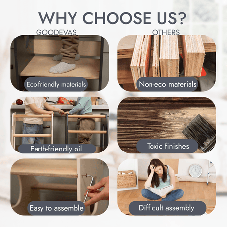 Wooden Montessori Shelves for Toddler 2in1: Bookshelf & Toy Shelving