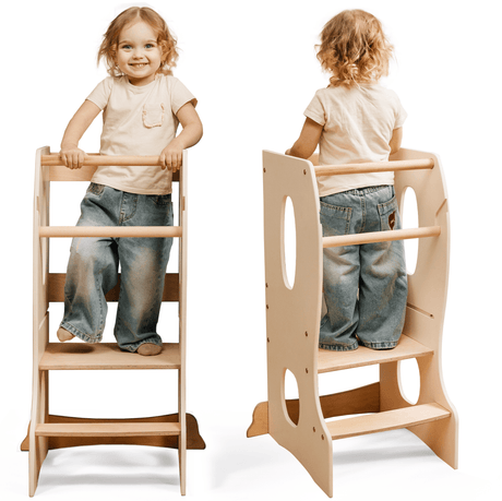 Stable Montessori Tower: Wooden Growing Chair - Beige