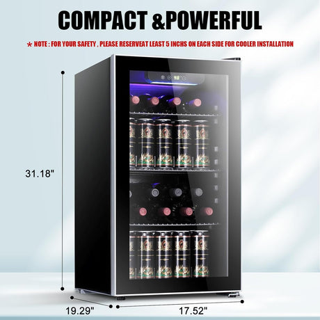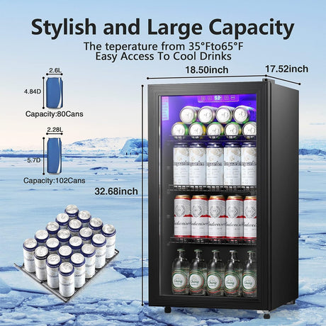 Beverage Refrigerator Cooler 4.5 Cu.Ft,145 Can Mini Fridge with Glass Door W58128BH