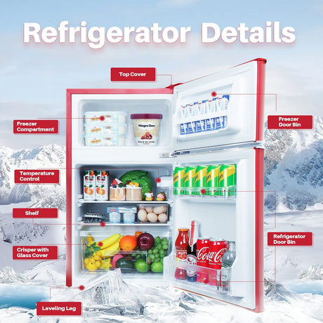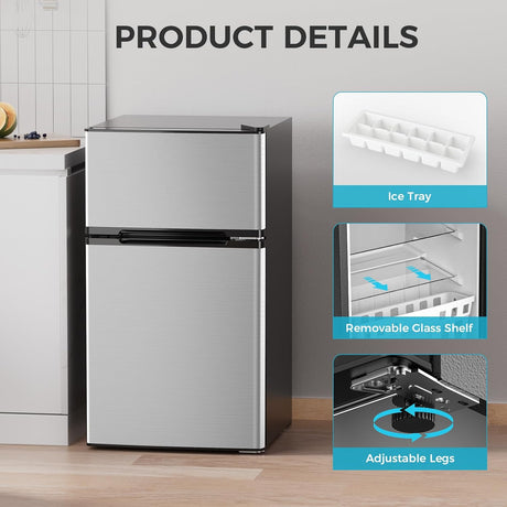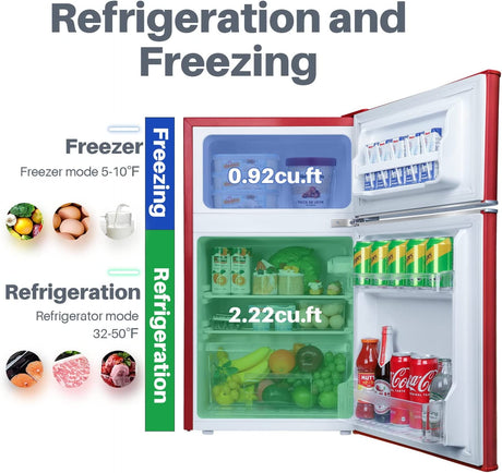 3.2 Cu.Ft Mini Fridge with Freezer, Double Door Compact Refrigerator 58087RRE0