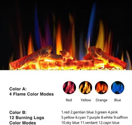 34 Inch Electric Fireplace Insert Adjuatble Flame Colors 936BXB