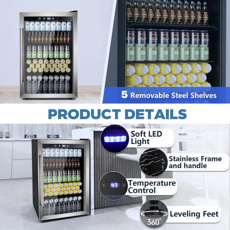 Beverage Refrigerator Cooler 4.4 Cu.Ft,145 Can Mini Fridge with Glass Door W58128SSH