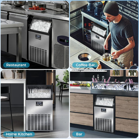 Commercial Ice Maker Machine,100lbs/24H Moon-Shaped Ice Machine with 28 Lbs Storage Capacity