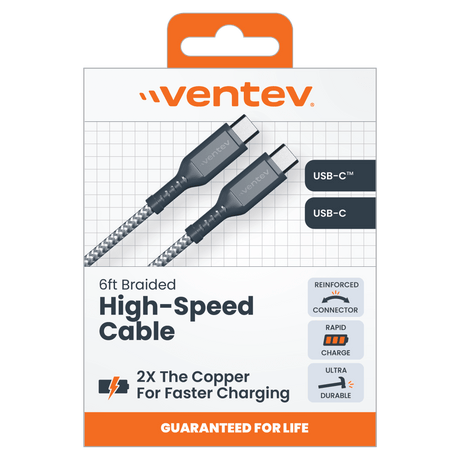 - Ventev - Ventev High Speed USB C to USB C Braided Cable with 2x the Copper for Faster Charging 6ft by Ventev Regular price $29.99Unit price /UnavailableIn stock