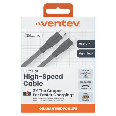- Ventev - Ventev Chargesync Flat USB C to Apple Lightning 3.3ft - Boxed by Ventev Regular price $24.99Unit price /Unavailable- 2 colors available In stock