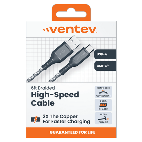 - Ventev - Ventev High Speed USB A to USB C Braided Cable with 2x the Copper for Faster Charging 6ft by Ventev Regular price $24.99Unit price /UnavailableIn stock