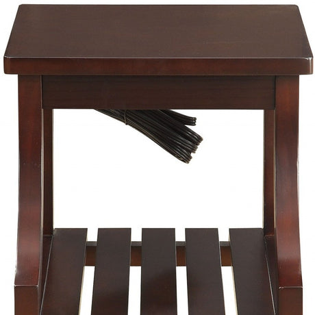 24" Brown And Black Solid Wood And Iron Square Frame End Table With Shelf