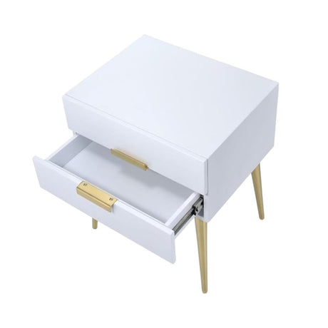 24" Black And Gold Wood And Iron End Table With Two Drawers