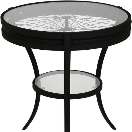 24" Black And Clear Glass And Metal Round End Table With Shelf