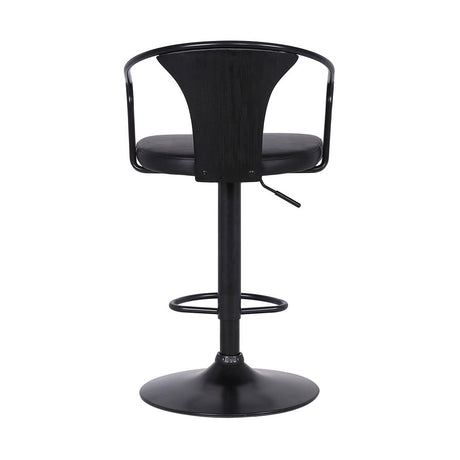 24" Black And Silver Faux Leather And Iron Swivel Low Back Adjustable Height Bar Chair
