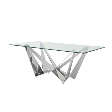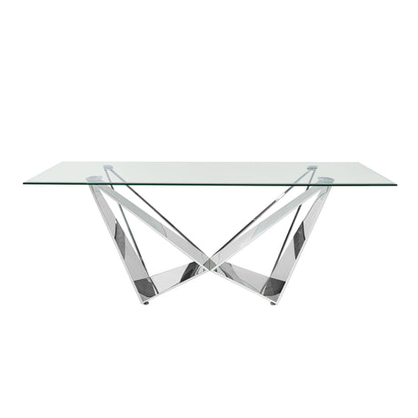 Clear Glass With Polished Stainless Steel Base Dining Table - Silver by Couch.com