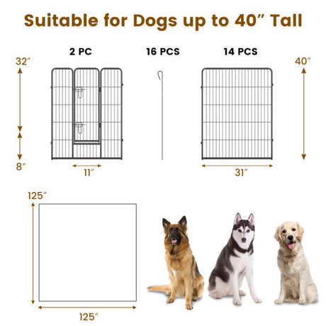 16 Panel 24/32/40 Inches Height Dog Playpen with Lock and Large Door-40 inches
