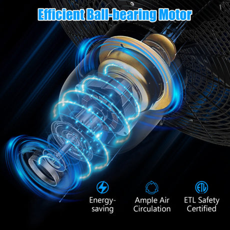 16 Inch Pedestal Standing Fan Oscillating Pedestal Fan with 3 Speeds and Adjustable Height-Black
