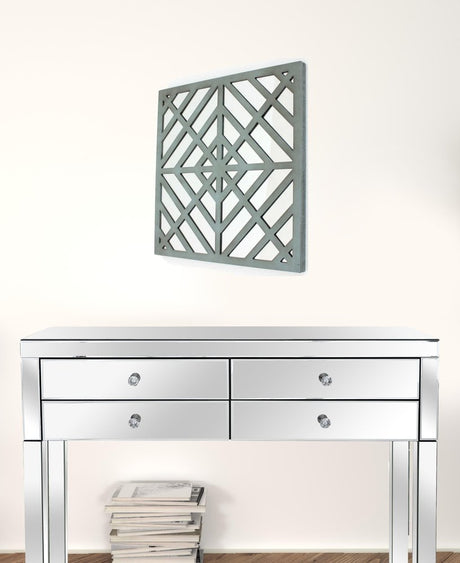 24" X 24" X 1" Blue Mirrored Square Wooden Wall Decor