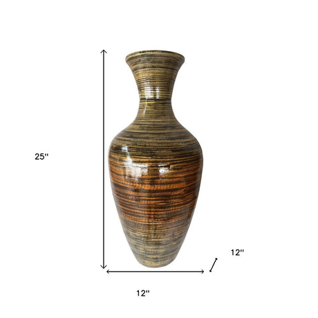 25" Black And Gold Striped Urn Bamboo Floor Vase