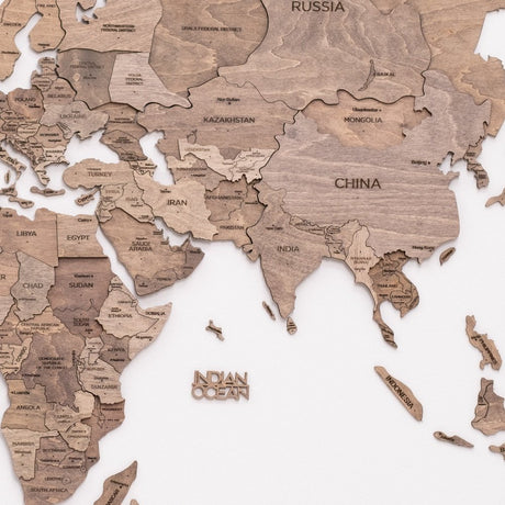 24" X 39" Brown and Beige Wood World Map Hanging Dimensional Sculpture