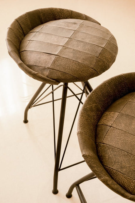 25" Brown And Black Iron Low Back Bar Height Bar Chair