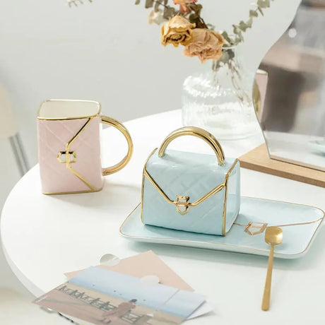 Creative Ceramic Coffee Mug and Saucer Set with Tray