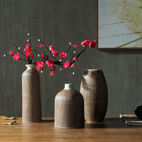 Creative Chinese Style Vase Three-piece Set Simple And Fashionable Wood Grain