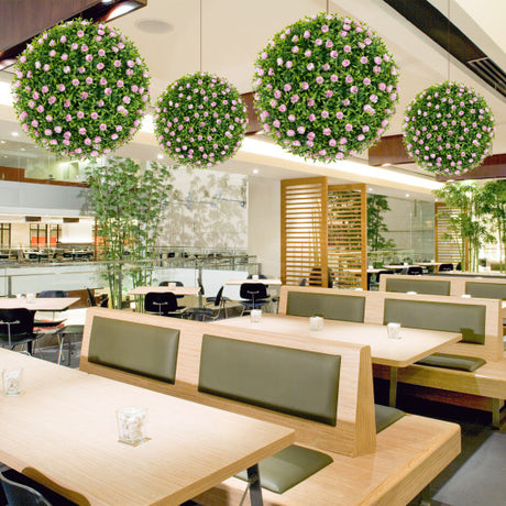 2 PCS Artificial Plant Topiary Balls 17.5 Inch Faux Decorative Balls with Pink Flowers