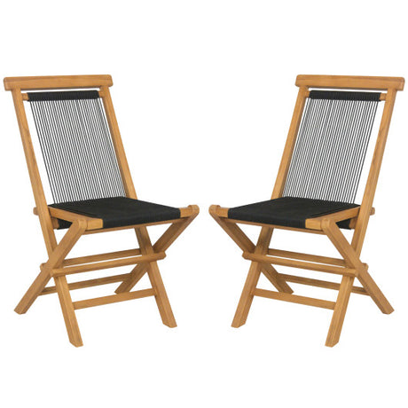 2 Piece Patio Hardwood Chair with Slatted Seat and Inclined Backrest