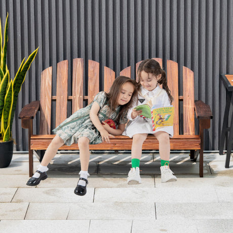 2 Person Fir Wood Adirondack Chair with High Backrest-Gray