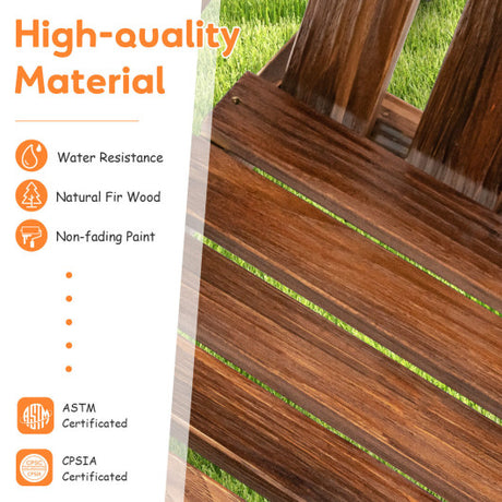2 Person Adirondack Rocking Chair with Slatted seat-Brown
