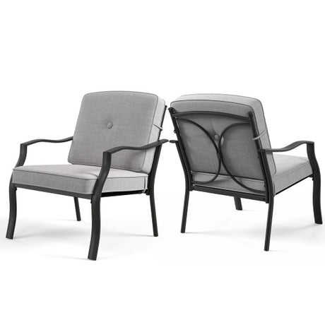 2 Piece Patio Metal Chairs with Seat and Back Cushions
