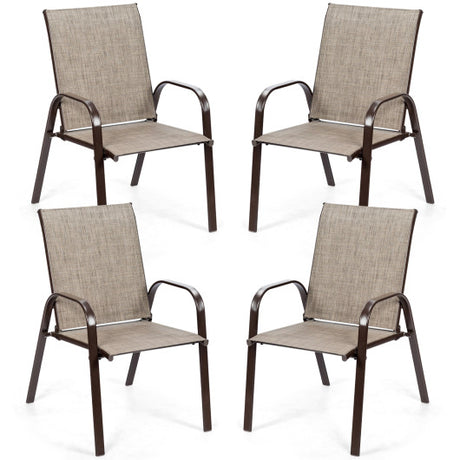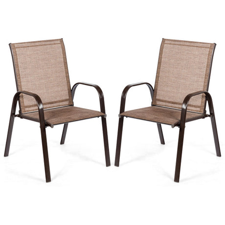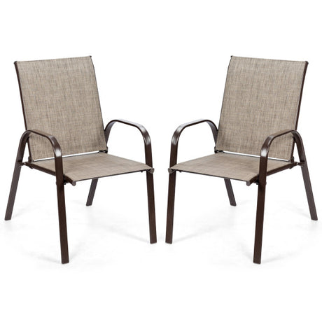 2 Piece Patio Dining Chairs Large Outdoor Chairs with Breathable Seat and Metal Frame-Brown