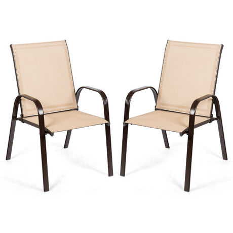 2 Pcs Patio Chairs Outdoor Dining Chair with Armrest-Beige
