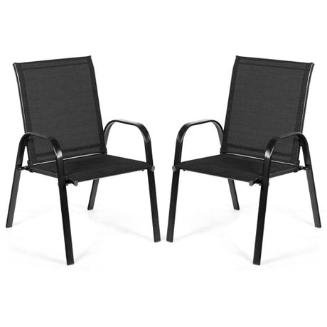 2 Pcs Patio Outdoor Dining Chair with Armrest-Black