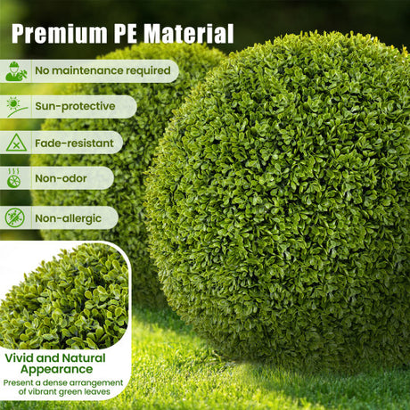 2 Pieces Artificial Plant Topiary Balls Faux Boxwood Decorative Balls-Green