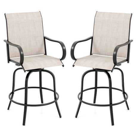 2 Pieces 360 Rotating Bar Stool Set with Armrests for Patio-Gray