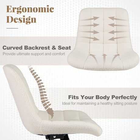 Teddy Fleece Armless Office Chair Makeup Vanity Chair-White by DirectDeals