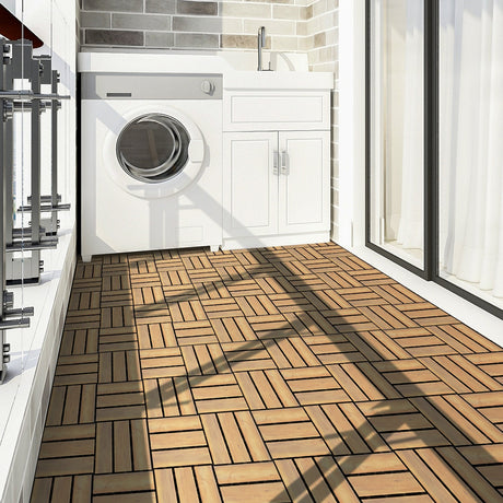 10 Pieces 12 x 12 Inch Acacia Wood Interlocking Tile Flooring by DirectDeals