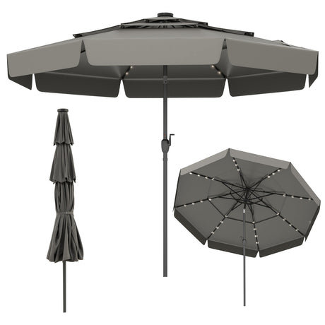 10 Feet Solar Patio Umbrella with 32 LED Lights 3-Tier Vented Top-Gray by DirectDeals